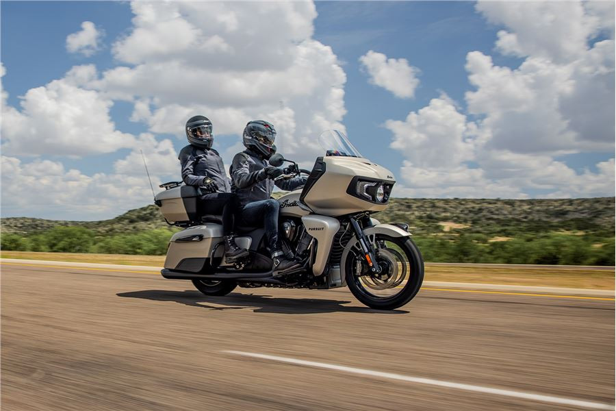 S kapalinou chlazeným motorem PowerPlus, sofistikovanými asistenčními systémy, kapotáží uchycenou k rámu a bohatou cestovní výbavou deklaruje Indian Pursuit svou pozici nejschopnějšího a nejvyladěnějšího amerického cestovního motocyklu.