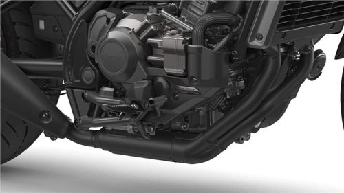 Z modelu Africa Twin přichází 270° fázování klikového hřídele a nerovnoměrné intervaly zapalování. Kromě toho došlo k úpravám výfukového systému motoru, časování a zdvihu ventilů s důrazem na ještě silnější „pulsy“ při běhu motoru. V souladu s dvojí osobností modelu Rebel se zvuk motoru mění od harmonické odezvy na všechny pokyny plynu v nízkých otáčkách až po bouřlivější adrenalinové „dunění“ při vyšších otáčkách.