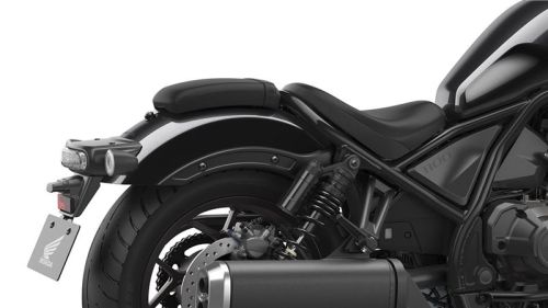 Sedlo je tvarované tak, aby jezdci poskytovalo dobrou oporu při akceleraci, jinak je měkké a zaměřené především na komfort. S Rebelem může jeho majitel vyrážet na vyjížďku sám nebo se spolujezdcem, neboť zadní sedlo je možné snadno a rychle odmontovat. Pod sedlem se nachází třílitrová odkládací přihrádka s USB-C nabíječkou.