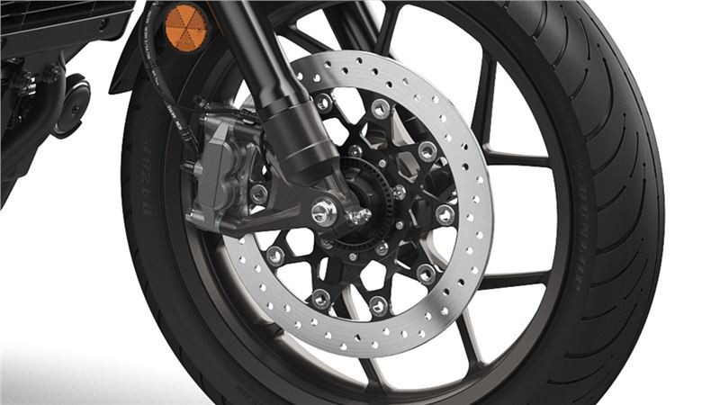 Účinné brždění zajišťuje přední radiálně umístěný jednodílný čtyřpístový třmen, který se zakusuje do 330 mm plovoucího kotouče, a jednopístový zadní brzdový třmen společně s 256 mm zadním kotoučem. Brzdy jsou vybaveny systémem ABS.