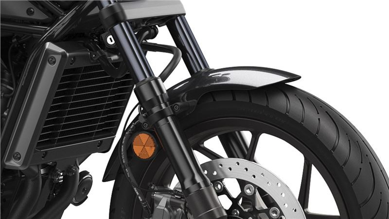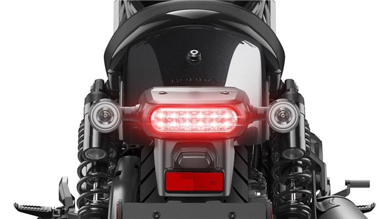 Přední i zadní blatník jsou lisovány z 1 mm silného ocelového plechu a jsou upevněny pomocí konzolí z hliníkové slitiny. Všude tam, kam se podíváte, naleznete designové prvky potvrzující unikátní celkový vzhled modelů Rebel. Nízko umístěný světlomet o průměru 175 mm má klasický tvar, uvnitř se však nacházejí čtyři LED diody se silnými vnitřními čočkami, které při jízdě za tmy vytvářejí charakteristický světelný vzor. Také malé 55 mm kruhové ukazatele směru mají klasický vzhled, zatímco oválné čiré zadní LED světlo vyčnívá svým moderním charakterem a dobře ladí s dalšími detaily.