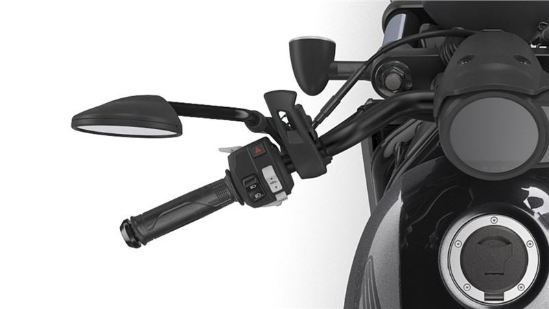 Předsazený 120 mm negativní LCD přístrojový panel obsahuje všechny potřebné informace. Klíček zapalování se nachází na levé straně rámu a otevírá se s ním i sedlo, aniž by bylo nutné jej ze zapalování vyjmout. Jednoduchá řídítka jsou upevněna pomocí robustních 2,5 cm úchytů a na levé rukojeti se nachází tlačítkový panel pro ovládání jízdních režimů a volitelné převodovky DCT. A pro dlouhé dálniční přesuny je součástí standardní výbavy také tempomat.