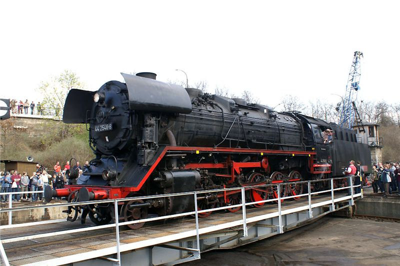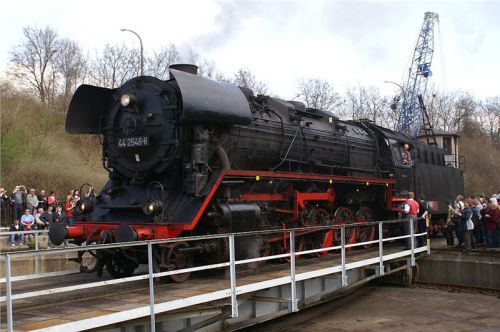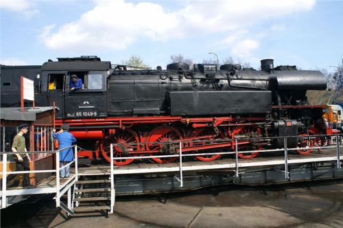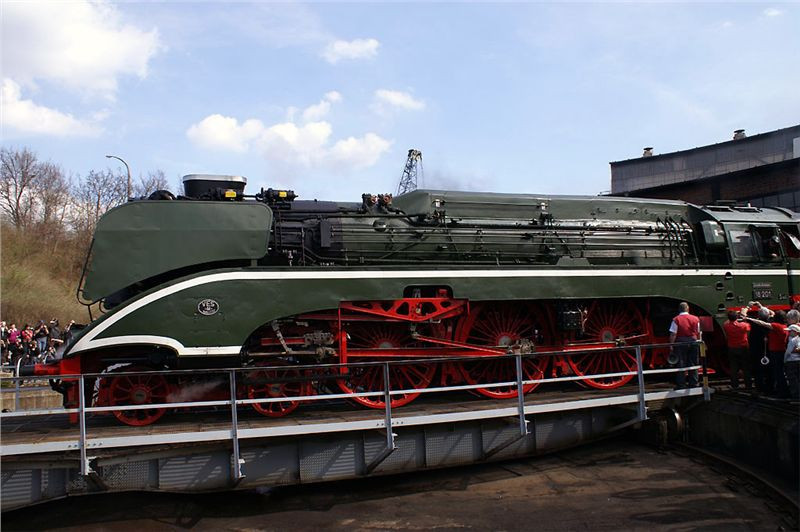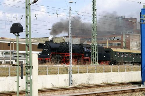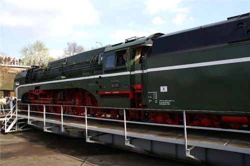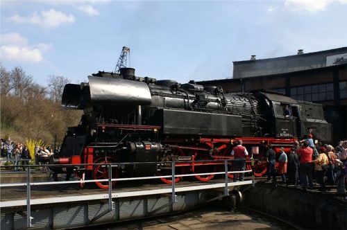 Nakonec dáme perlu – druhá kruhová výtopna je plná zatopených parních krasavic, včetně nejrychlejší německé páry z třicátých let. Tady je hlava na hlavě, vždycky jedna z lokomotiv vyjede na točnu, párkrát ji otočí pro potěchu pozorovatelů i fotografů, a tak pořád dál. Nakonec se dvě mašiny vyvezou na manipulační kolej, spojí se do soupravy a odsupí k nádraží, kde na ně čeká zvláštní nostalgický expres, mířící (alespoň co jsem rozuměl z tlampačů) kamsi do severní Itálie – zřejmě klasikou přes Brenner, to aby si šotouši přišli na svý. Po celou dobu jezdí po jedné z nádražních kolejí dvojice klasických „němek“ řady 52 a vozí za úplatu zájemce přímo na stanovišti strojvedoucího. Vida, tady to jde, byť jsme v předpisy sešněrované Teutonii :-). U nás by z toho Drážní inspekci trefilo....