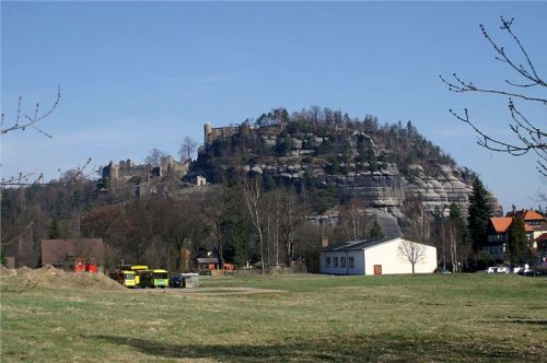 Dneska je Kurort Oybin lázeňským a rekreačním městečkem, koneckonců i vybudování dráhy ze Žitavy (Zittau) bylo v úzkém vztahu k dopravě lázeňských hostů. Nedělní dopoledne je tu značně ospalé, vlastně je i mimosezóna, všude zavřeno, nikdo nikde. Zaparkujeme hnedle u koncového nádraží, nu a jelikož další vlak přijede za tři čtvrti hodinky, posečkáme zde. Sluníčko hřeje, pozvolna se otepluje takže paráda.