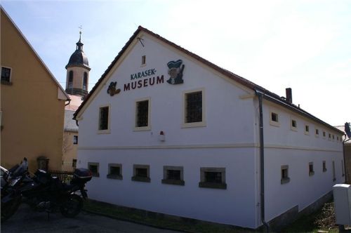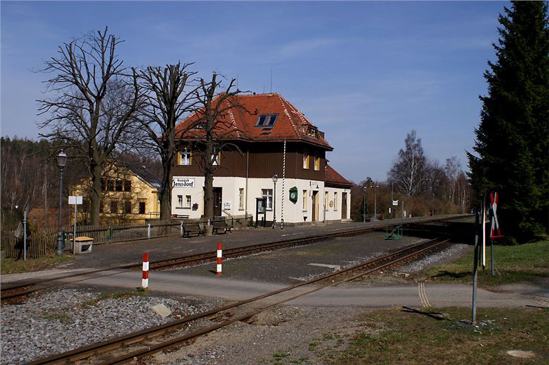 O kus dál leží podobné městečko Johnsdorf, taktéž lázeňské. Zdejší nádražíčko, menší než oybinské, je pusté. Další vlak se sem dostaví za dvě hodinky, takže jen omrkneme plenér a razíme dál na západ. Čeká nás totiž včera v pivním oparu dohodnutá schůzka v muzeu Johanna Karaseka.