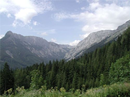 Míříme stále na jih údolím Thörlbachu, souběžně kdysi vedla železnice (na mapě Freitag&Berndt 04/1995 je dosud značená, na druhé od ARBÖ z roku 1988, už ale není… u frajtága nejsou asi zas tak moc pružní), dnes je již její svršek snesen, zemní stavby, opuštěné mosty a přeasfaltované přejezdy dávají tušit, že se tak stalo nedávno.