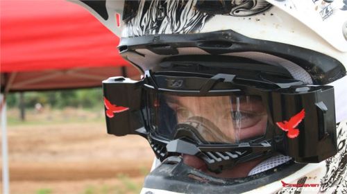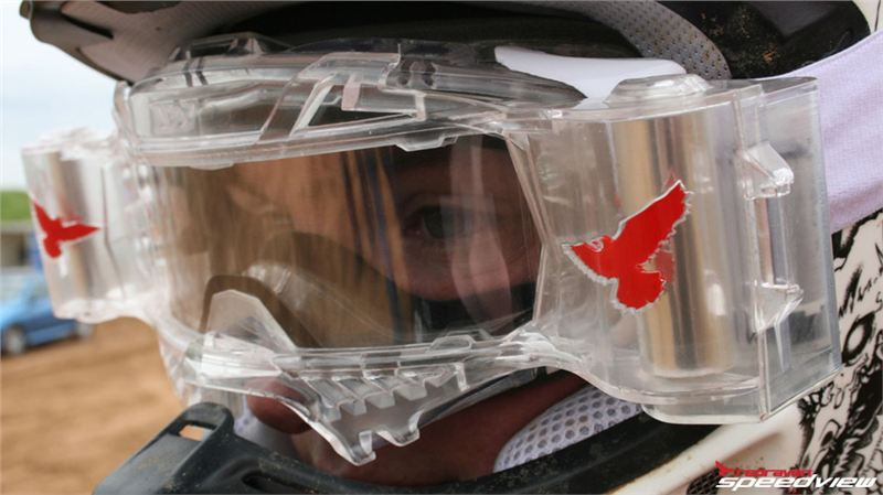 Jak to funguje? Jedete v terénu a brýle se vám zašpiní od bláta, tak jen zmáčknete tlačítko na řidítkách. Bluetooth přenosem se dostane pokyn do brýlí a ty vám přerolují před oči novou, zcela čistou fólii, takže máte opět nerušené vidění. Jedna role fólie vydrží až na 40 posunů!