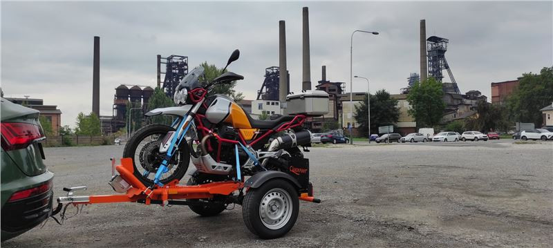 Standardně si pro testovací motocykly jezdíme k importérům různě po republice. Občas se však zadaří a nejen motocykly přijedou za námi. To je i případ, kdy jsem měl možnost si v Ostravě prohlédnout a vyzkoušet přívěs na motocykly značky QUICKFOOT. Přívěs QUICKFOOT vyrábí česká společnost CVARIO s.r.o. z Mladé Boleslavi, dokončila testovací zkoušky a získala pro svůj výrobek evropskou homologaci.