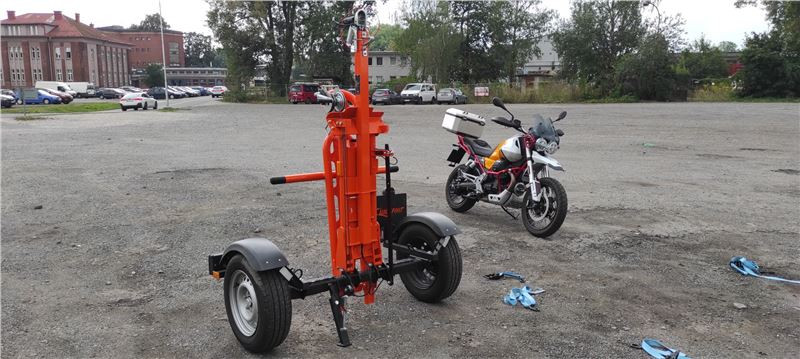 Jednatel společnosti Miroslav Hamsa, který s vozíkem přijel osobně, mi cestou vysvětluje historii projektu, a hlavně to, že vozík je vyráběný v Mladé Boleslavi a práškové lakování probíhá nedaleko. Co se zde přímo nevyrábí od A do Z, je náprava, která se vyrábí ve spolupráci s německou společnosti WAP. Ta byla založena v roce 1994 v Severním Porýní-Vestfálsku a 20 let úspěšně zásobuje trh kvalitními komponenty pro přívěsy a návěsy. V Mladé Boleslavi mají od WAP nakoupen vysokopevnostní profil, který se zde zpracovává na požadovanou délku, navaří se na něj potřebné komponenty a v německu se nalisují náboje s rameny pro montáž kol.