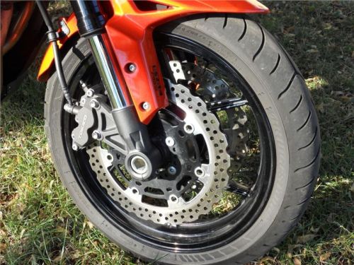 Velmi dobře fungující brzdy Tokico bych však u takto agresivně a těžkotonážně vyhlížející motorky očekával ještě silnější. Vůbec jim nechyběl výkon, ABS fungovalo výborně a skoro nepostřehnutelně, brzdy jsou dostačující, brzdiče Brembo z dříve testované KTM 1050 Adventure by však Versysovi slušely více.