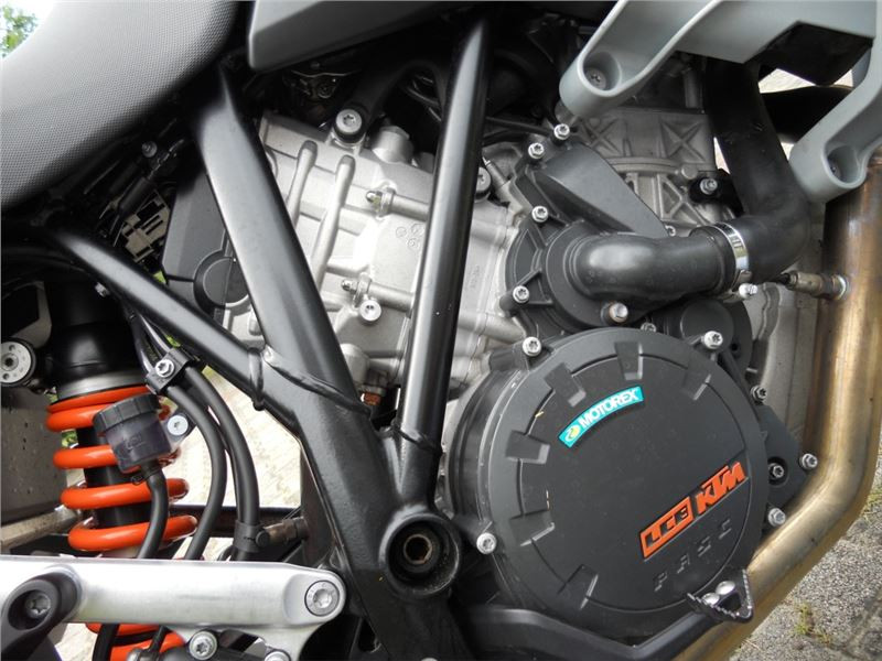 Kuchaři z KTM uvařili pro 1050 nový píst, který je o 50 g lehčí, zatímco nová klikovka má na setrvačníku více hmoty a dohromady z toho vzešel jemnější chod motoru. Jedním z hlavních důvodů, proč tahle motorka vznikla, jsou novinky v EKO a homologačních zákonech pro Evropu. KTM 1050 je totiž možné pořídit s omezeným výkonem 35 kW (přiškrcení), přičemž neomezená verze takové úpravy může mít nově jen 70 kW. Tedy nově by již nemělo být možné pořídit 35 kW „uškrcenou“ například 1190 RC8R s původními cca 120 kW :-).