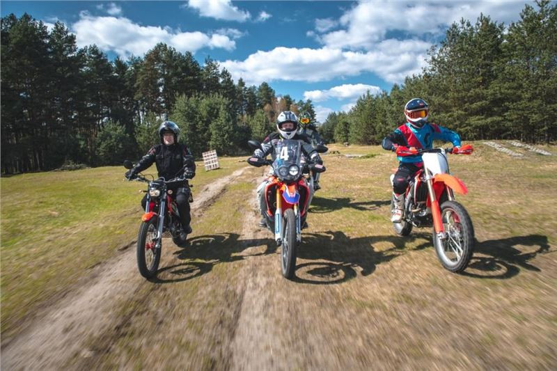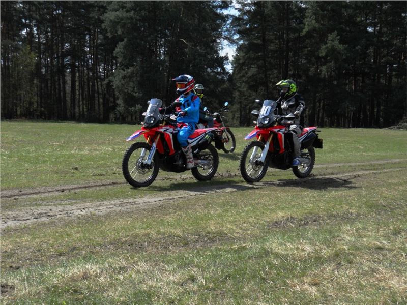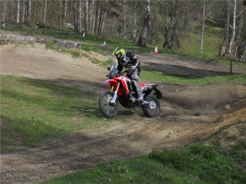 Na mě vychází až pozdější jízdy, ale zůstávají některé motorky volné, tak se rychle převlékám do motohader a na CRF250 Rally upaluju za ujíždějící skupinou. No upaluju... Mých osmdesátpět kilo nemá na upalování vliv při rychlém řazení nižších stupňů, ale později už se toho moc neděje. Na asfaltu maximálka decentně překračuje povolené rychlostní limity a na rychlé ježdění tahle motorka fakt není.