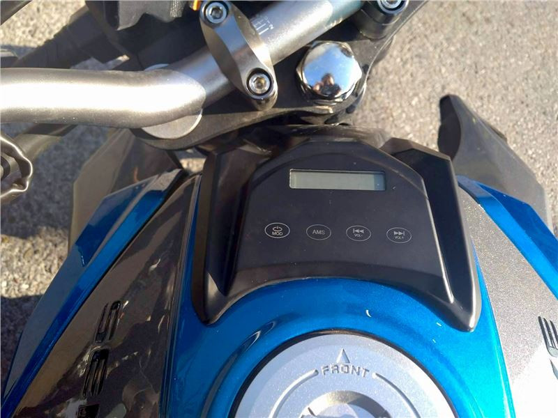 A propos - když jsme u té vody.... Tam vaše dítko bandu neskutečně oslní. Pecka pro teenagery největší je modul rádia, umístěný zvrchu vpředu na nádrži. To když rozjede songy uložené na USB flash disku, umístěném pod sedlem spolujezdce, nebo naladí AM/FM rádio, nebo si připojí muziku přes Bluetooth třeba z mobilu, bude si připadat jak na Gold Wingu :-). Ne teda komfortem, ale hudební cirkus předvede osazenstvu stejný...