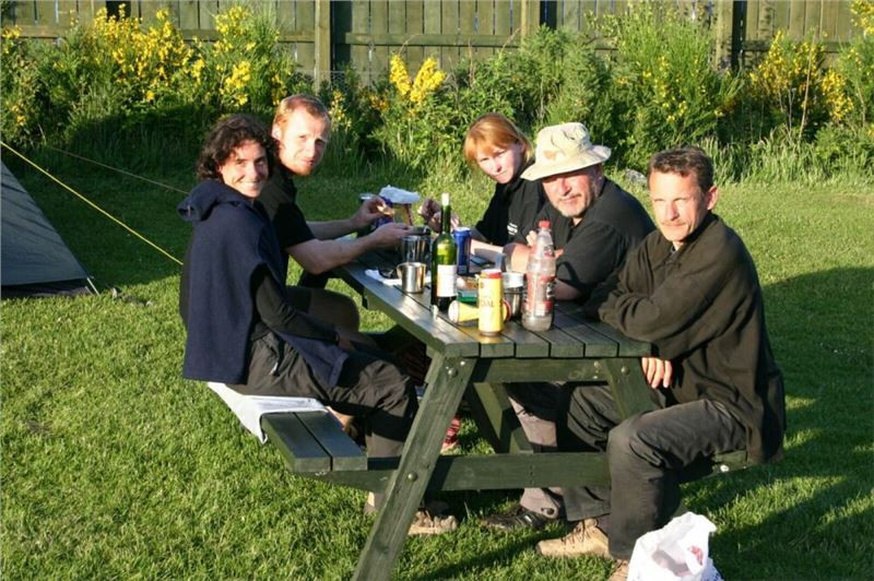 Večer už se nese v tradičnějším schématu, tedy vaření večeře a následné potlach a popíjení toho, co má každý k dispozici. Ještě za světla zalézáme k chrupanci.