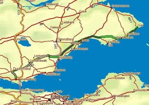 Už zase pohromadě zamíříme pobřežní silničkou až do Kirkcaldy, za ním najedeme na dálnici, protože motat se dále po pobřeží se mým kolegům už nechce, neb předevčírem tady už jeli. Krátký kousek nás přivede až na kraj Dunfermline. Zde neposlechneme cedulek FERRY, ale popojedeme až do starobylého centra, kde zaparkujeme na rozsáhlém parkovišti. Před odchodem si všimneme, že Jiřík si nechal rukavice a.j. odložené na motorce a odkráčel. Tak mu to schovám do svých, už dost volných, kufrů:-)