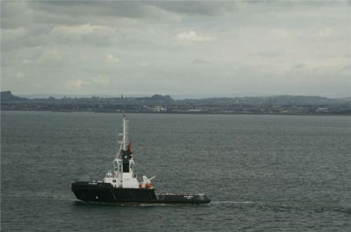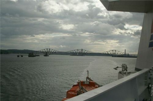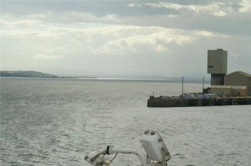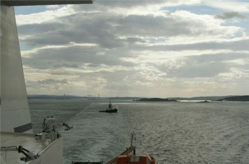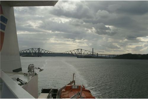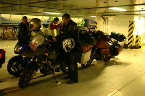 Terminál nás uvítá shlukem motorek a aut (mašin je tu docela dost, hodně Skotů opouští svoji domovinu na dovolenkové putování, zdá se), takže chvilku trvá, než se tím davem prodereme přes check-point až do vyčkávacího prostoru. Zde postojíme jen chvilku, než nás naloďovací důstojník vyzve na boarding party.