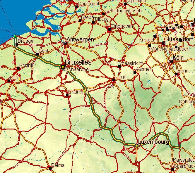 Ujmu se vedení, neb budeme sledovat trasu, mně již notoricky známou z modelářských výletů. Můžu ji jezdit skoro poslepu, ani mapu nepotřebuju. Bruselský ring nás navede na dálnici směr Lucemburk, která je přeci jen o trochu zajímavější než ty stopro rovinaté v Holandsku a západní Belgii. Bohužel, není růže bez trní a jelikož se tady opravuje jeden jízdní směr, je doprava svedena do směru druhého. Kdo žehrá na naše dálniční uzavírky, měl by zažít belgickou. Každý směr má jen jeden pruh, ty jsou rozděleny mohutnými betonovými bloky a asi jich mají belgičtí silničáři dost, protože uzavírka je dlouhá skoro osmdesát kilometrů. A na celé je šedesátka až osmdesátka... :-(