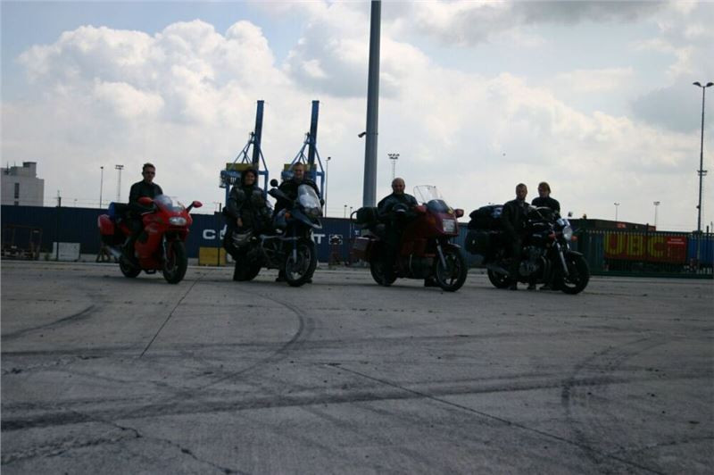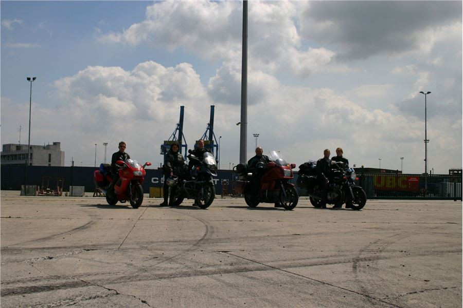 Zeebrugge se před přídí zjeví přesně v určené době a stejně tak podle plavebního řádu zakotvíme u stejného mola jako při odjezdu. Mašiny shledáme v pořádku, takže tímto pro nás končí letošní námořní dobrodružství. Shromáždíme se na liduprázdném naloďovacím place, polední slunce na nás praží jen což. Uděláme poslední památeční skupinové foto, načež Johnny se Zdendou naskočí a zmizí na pobřežní silnici.