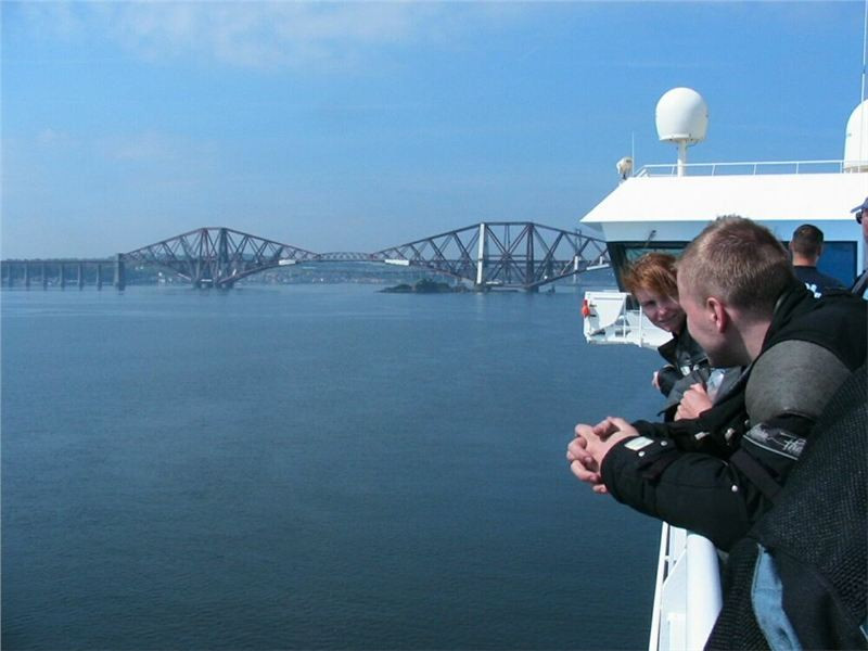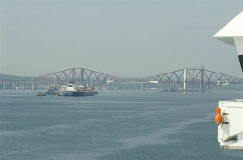 Čas se naštěstí pomalu naplňuje, před jedenáctou se pevnina nalevo začíná přibližovat a rýsovat se, jak loď zahýbá kolem North Berwicku do Firth of Forth, kde leží jednak Edinburgh, a druhak i na protějším břehu náš cíl, Rosyth. Ve Skotsku nás nejprve přivítají skaliska s majáky Bass Rock a Fidra, pak se na chvilku záliv rozšíří, ale je jasné, že plavba končí. Míjíme další majáky a majákové bóje (na jedné se vyhřívají tuleni), po levé ruce se rýsuje silueta Edinburghu, přes kterou v pravidelných intervalech nasazují dopraváky na přistání na nedalekém letišti. Tohle všechno sledujeme už ze sun decku, spolu s námi davy ostatních pasažérů. Já si