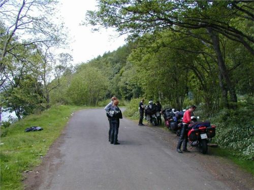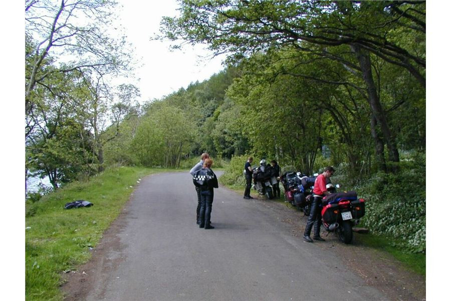 A taky jo, Loch Earn máme po levé ruce, leč místeček na picnic se jaksi nedostává. Až skoro na konci vodní plochy z hlavní občas odbočí víc ke břehu odpočívadla, tvořená tělesem původní klikaté vozovky, tož na jedno odbočíme. Musíme jej skoro celé projet, než najdeme přijatelné místečko, kde bychom byli více méně o samotě. Je tu i trochu výhled, dost stínu, trošinka bordýlku (obyvatelé ostrovů – podle mých zkušeností – nemají v sobě kázeň germánského nebo skandinávského obyvatelstva co se čistoty a ordnungu tejče, na druhou stranu, kam se hrabou na Taloše, Frantíky, Chorvaty a podobné orientální pronárody) takže je čas na přestávečku.
