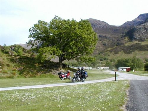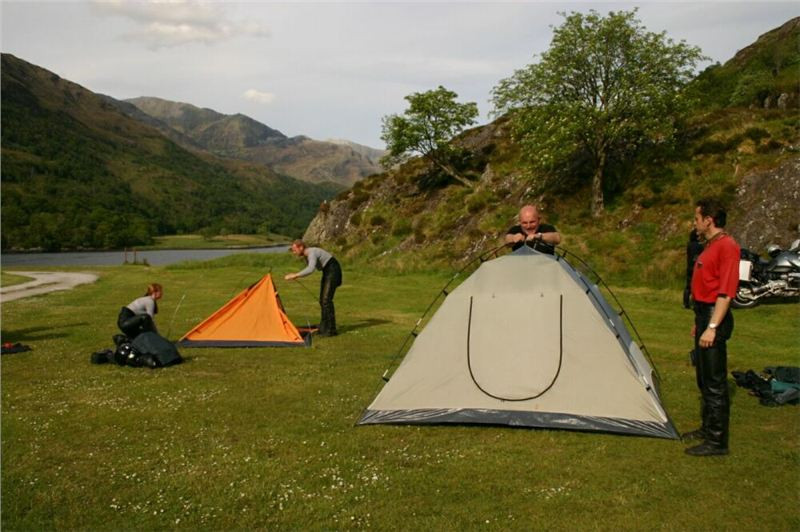 Na kraji Glencoe nejprve natankujeme, a hned za pumpou na křižovatce leader poslechne směrník, ukazující k „červené veverce“. No, neposlechne jej až tak doslova, a zamíří po pobřeží Loch Leven do vnitrozemí. Jedeme tak tři, čtyři, pět kilometrů, než víceméně na půli cesty do Kinlochlevenu narazíme na poutač, který nás nasměruje vlevo, kde na břehu leží kemp.