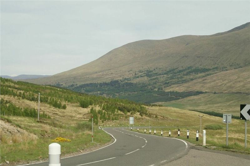 Opouštíme hustěji osídlené pobřeží, takže se můžeme i trochu rozject. Roztáhneme se, a já se můžu věnovat trochu více i krajině kolem, která konečně začíná připomínat Skotsko:-). Protáhneme se vrchovinou zhruba mezi Perthem a Stirlingem, překročíme rychlostní silnici spojující tahle dvě města, a pokračujeme až do Crieffu. Tady uhneme vlevo přímo na západ po A85. Už by to chtělo pomaličku zastavit, je skoro půl druhé a mohli bychom už něco poobědvat. Není třeba spěchat, cíl zase není tak daleko. Odbočím, vůbec je v tomhle výhoda Skotska, nikam není až tak moc daleko, na vzdálenosti je to tady dost podobný jako u nás.