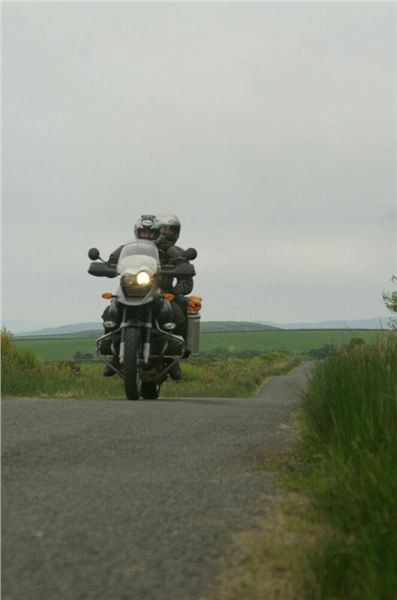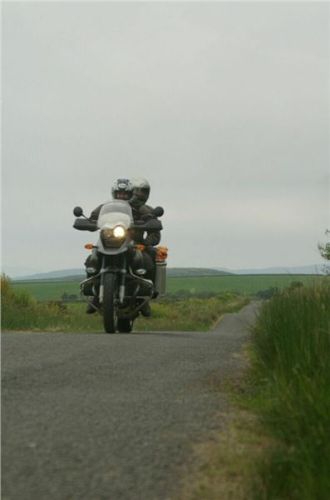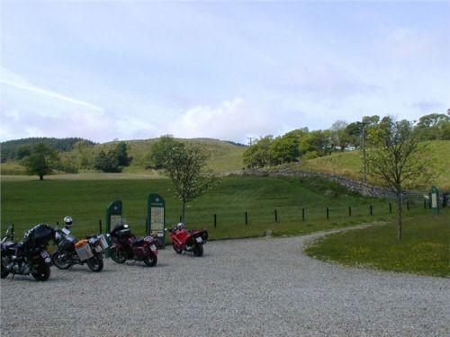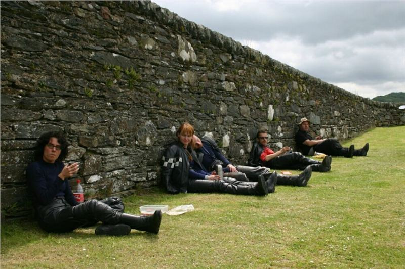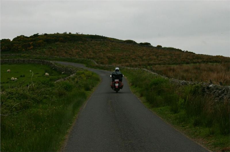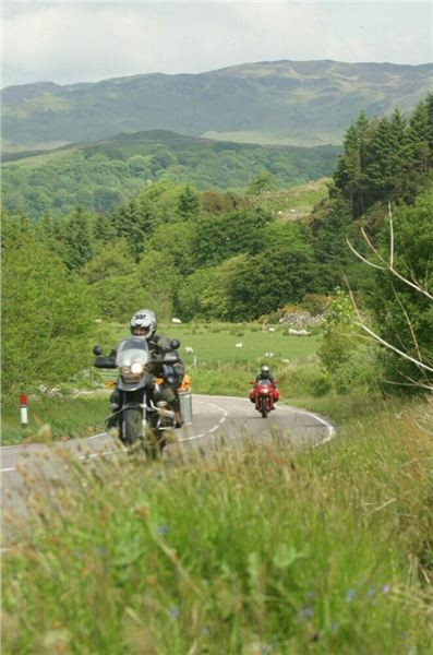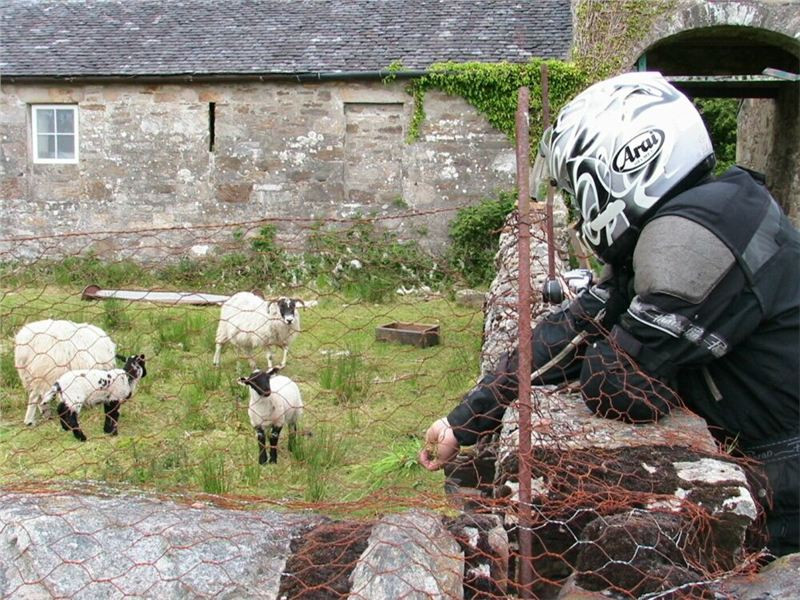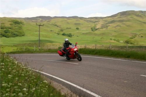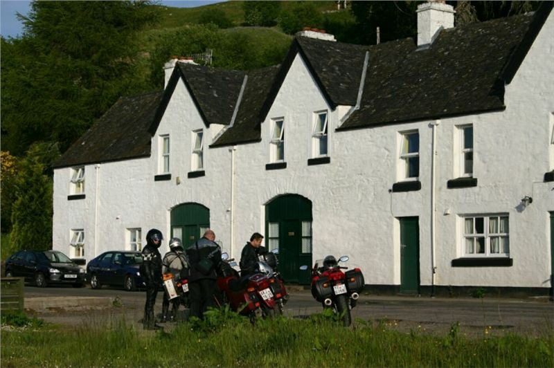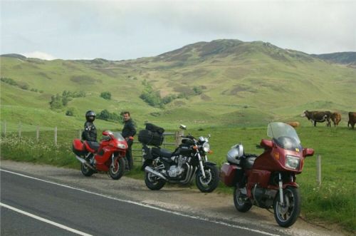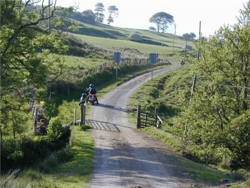 Kousek se vracíme po již jeté cestě, za Bridgendem však uhýbáme na tu vůbec nejnižší třídu silnic, co mapa zná, unsurfaced road. V praxi jsou to dvě koleje štěrku, občas prolité asfaltem, místňákům tohle zdá se bohatě stačí, no a nám musí taky, chceme-li se dostat podle plánu k Loch Awe. Taky bychom mohli později zbaběle odbočit od Carnassarie Castle, ale to by nebylo vono, že.... takže se probíjíme pastvinami, seč nám síly stačí. Mě to ani nevadí, na podobných routách jsem honil Káčko kdysi v Irelandu, Náčelník na tohle má optimální strojek, a Bekr, ten zdá se taky zvládá. Mám jen trochu strach o Jiříka, přeci jen, ušlechtilá italská kráska a tahle drsná severská routa, plus jeho přeci jen menší vzrůst... no nic, jedeme dál
