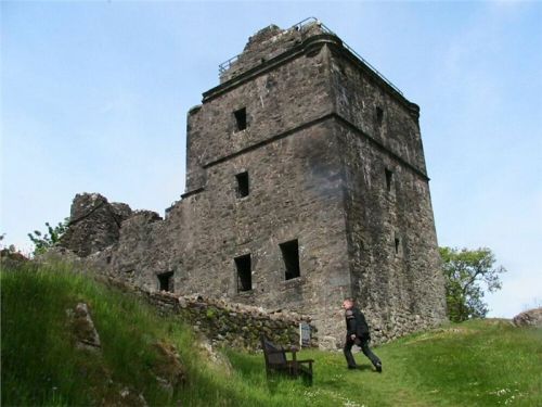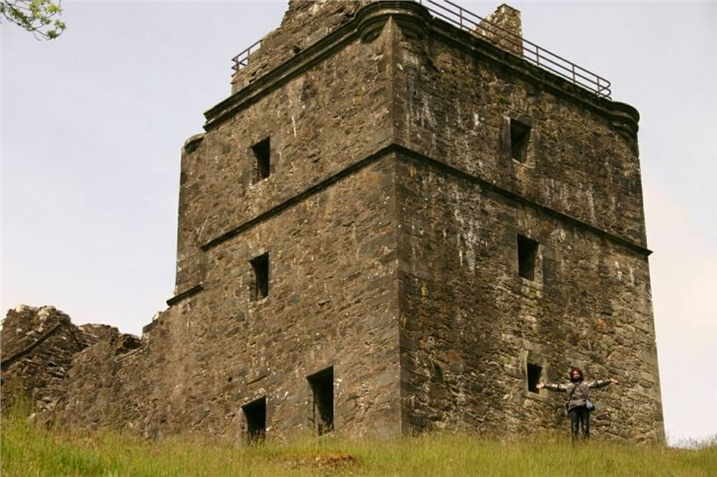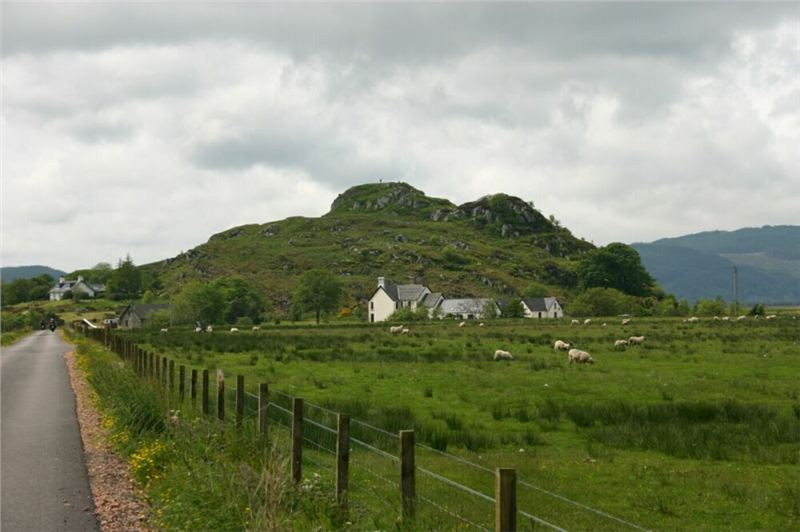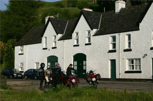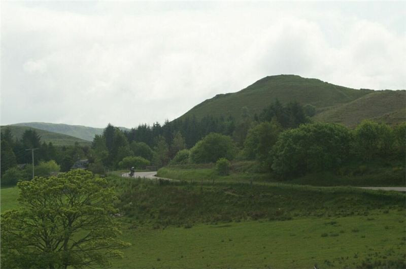 Z Obanu vyjíždíme přímo na jih, cesta zamíří do vnitrozemí a neustále stoupá. Stavíme v horské kotlině na první fotozastávku, pak se rozdělujeme tak, aby vždy jeden fotograf měl možnost zachytit ty ostatní v pohybu. Následuje tedy individuální sjezd k Loch Melfort a prudké stoupání po jeho jižní straně, po pár kilometrech se opět dáváme dohromady a volným tempem sjedeme na příbřežní planinu. Tady je náš první postupný cíl, hrad Carnassarie (odkaz2, odkaz3). Až k němu se nedostaneme, tedy ne na našich mašinách. Není to ale daleko od silnice,