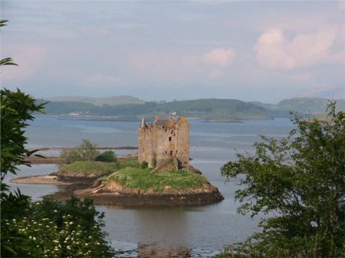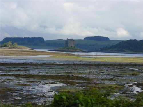 Protože si chceme zkusit, co obnáší i místní okresky, míníme na patě poloostrova Appin uhnout a promotat se po jeho pobřeží okreskama. V průlivu Sound of Shuna zaujme na ostrůvku stojící hrad Stalker, orámovaný impozantním pohořím Morvern (tím bychom měli projíždět pozítří) Jiříka tak, že si jej chce zachytit kamerou, a tak zastaví s tím, že na něj počkáme, až bude místečko.