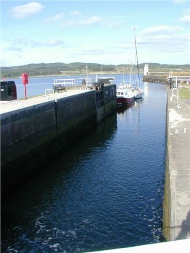 Lochgilphead je koncovým (nebo počátečním, jak chcete) kanálu Crinan, který přetíná patu Argyllu a usnadňoval tak dříve rybářským a obchodním lodím cestu do Irského moře, neboť nemusely dlouze objíždět poloostrov Kintyre. Kanál mne zajímá, nikoliv však ostatní, takže stavím u vrat zdymadel, obhlížím a fotím. Zbytek čeká opodál, až vykonám své a přidružím se.