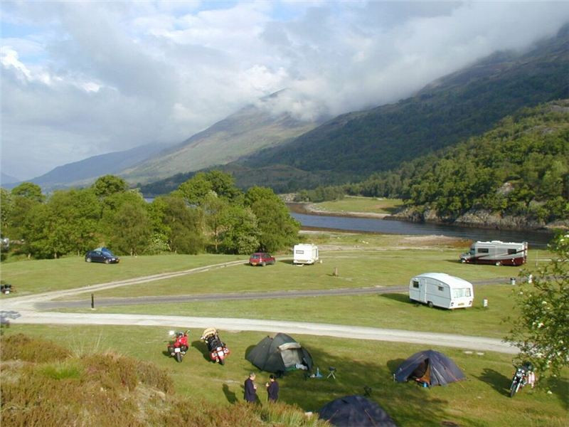 Skrz Glen Coe jedu opět sám, a ve sjezdu tentokráte neminu odbočku na původní silničku do Glencoe, tož si ji dám. A hele, ona je tu i cedulka „K červené veverce“! Vzápětí na kempík narazím, leží nad vesnicí v háječku, i s potůčkem uprostřed. Jak ho tak vidím, možná, že je líp, že jsme jej nenašli, neb jestli bych si mohl tipnout na „ráj midgies“, tak by to mohlo bejt tady. Stín, závětří, voda.... hmmm.