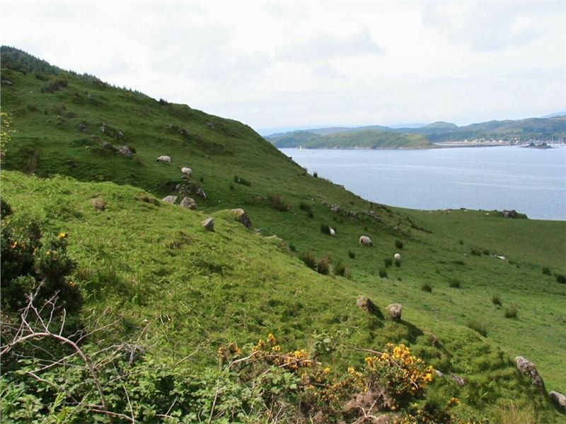 Silnička nás vede totálně opuštěnou (až na ty ovce..) krajinou pobřeží Loch Caolisportu, občas míjíme i ruiny samot či malých osad. U jedné usedlosti na chvilku zastavíme, spíše jen na vychutnání atmosféry a protažení těl. Opravdu, dýchá to tady zasmušilostí, nehybností a zmarem, když se k tomu přidá i dočasně zatažená obloha, pocit konce světa nemá chybu.