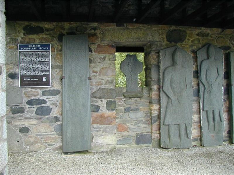 „Šutry“ na kraji Kilberry jsou pozdně středověké náhrobky, nalezené v okolí a shromážděné na kraji zdejšího kostela pod přístřešky. Prohlídka netrvá moc dlouho, a vracíme se zpět na okružní silnici.