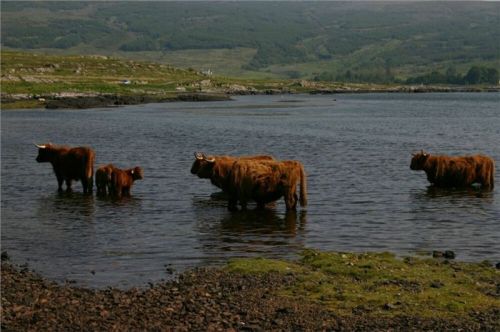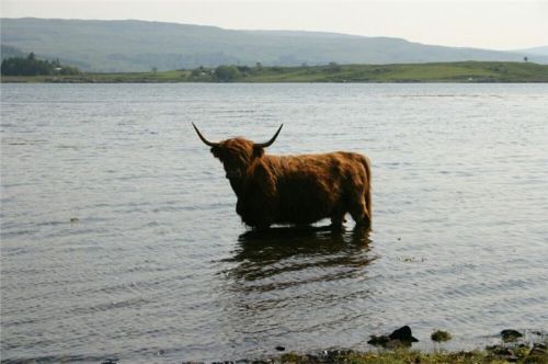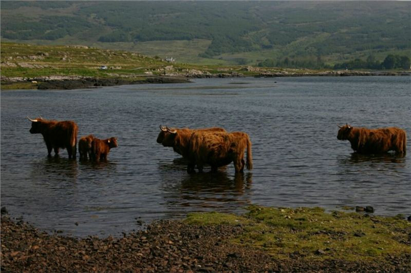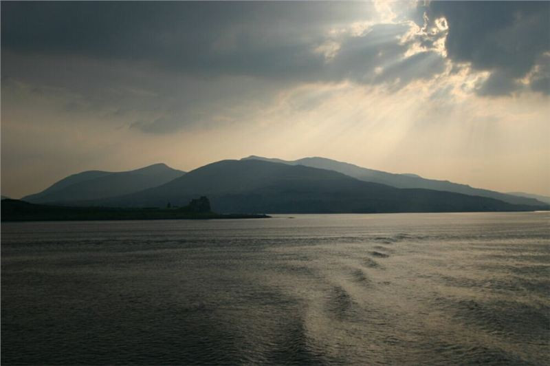 Plavba přes „Sound of Mull“ vezme necelou půlhodinku, takže se lehce po poledni vyloďujeme na Mullu. Ještě na lodi Johnny dostává rady od jednoho místního znalce poměrů. Ten doporučuje využít sezónního a dnes jedoucího trajektu z Tobermory do Kilchoanu a navštívit maják na Ardnamurchanu. Prej je dneska obzvláště dobrý výhled a je vidět celý řetězec Vnějších Hebrid. Tam jsme již s Janou byli (Hebridy ale vidět nebyly...), takže se mi tam popravdě podruhé nechce. Ale moc svůj názor neprezentuju. Po krátké poradě spolčenstvo usoudí, že putování po Mullu a návštěva Iony bude optimální variantou. Fajn.