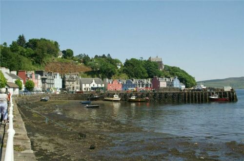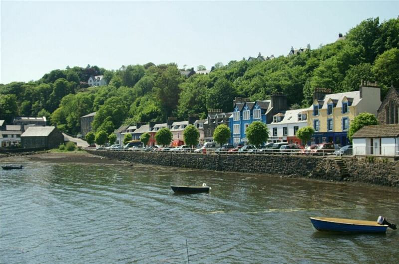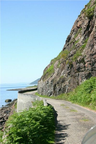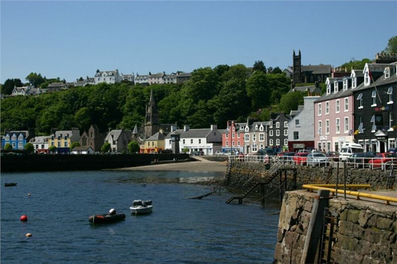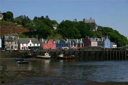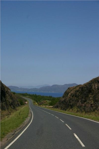 Prvním naším dnešním postupným cílem je významný přístav v severní části ostrova, Tobermory. Do něj nás zavede docela příjemná silnička, táhnoucí se víceméně podél pobřeží. Dosti prudkým finálním sjezdem kolem malé distilerky se dostaneme na hlavní přístavní komunikaci.