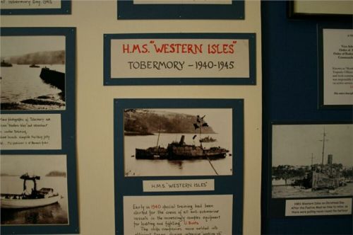 Tou mojí je daleko spíše historie nedávná. Ta je zastoupena velmi bohatě, protože hlavně v devatenáctém století, před první válkou a v meziválečné době byl Tobermory velmi významný rybářský přístav. Za světových válek, kdy námořní komunikace fatálně ohrožovaly německé ponorky, byl základnou eskortních plavidel, ve druhé válce se zde navíc secvičovala a zdokonalovala eskortní plavidla do svazů. Admirál, velící výcviku, měl své sídlo na HMS Western Isles, obchodním parníku přestavěném na velitelskou loď. Obzvláště z této doby tu je hodně exponátů, převažují foto, písemnosti a drobné relikty. Takže se tím probírám, zcela zabrán. A moji leteckou duši navíc oblaží zbytky Dakoty a Beaufortu, snesené leteckými archeology z okolních kopců. Vše jsou pozůstatky z válečných havárií. Díky německým ponorkám tady zdá se bylo dosti živo, což dokazuje i velmi podrobná mapa vraků na pobřeží Mullu. Odhaduju, že přes dvě třetiny jich je z období obou světových konfliktů.