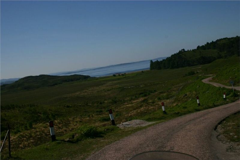 I teď to spíše mydlíme než bychom jeli turistiku, naštěstí alespoň jedem proti větru a zapadající pupenec už taky tak nežhne, alespoň tohle je lepší. I silnice se v úseku přes Glen More zkvalitní, napřímí a skoro je radost ji sjet, stoupání, klesání, táhlé zatáčky dají trochu zapomenout na profláknutou příležitost. Hezky jsme se projeli...
