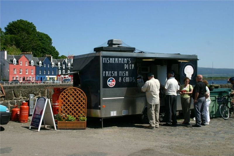 Je k jedné a na skotské poměry panuje docela slušný hic, teploměr ukazuje něco kolem sedmadvaceti. Protože od lodního informátora má Náčelník doporučení na vynikající fish-chipsárnu, rozhoduje se výprava tuhle národní krmi poobědvat. Mně se daleko víc chce mrknout na jedinou ostrovní úzkokolejku na Mullu, která by měla bejt tady. Rozloučím se na hodinu, nechám je smaženým treskám a zamířím na průzkum.