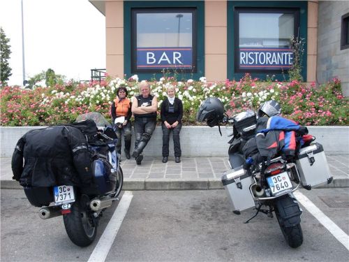 Nejprve klasický přejezd přes Rakousko, „zpestřený“ kroupami na Brenneru. Přenocujeme v Natz Schabs ve známém penzionu Trinnerhof, kde spíme už poněkolikáté – vždy, když jedeme někam na jih, nebo se z jihu vracíme. Srdečné přivítání, motorky v garáži, za dvě osoby se snídaní platíme 50 euro.