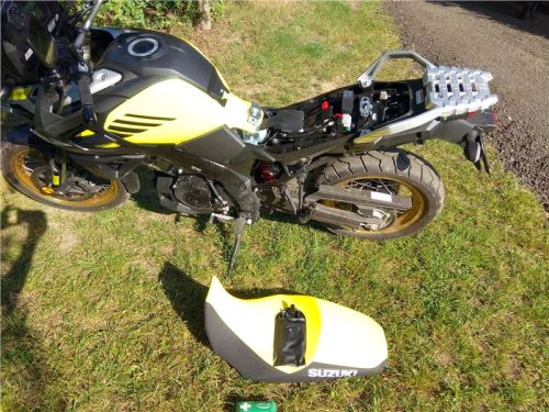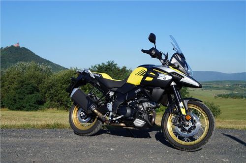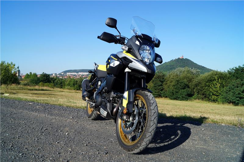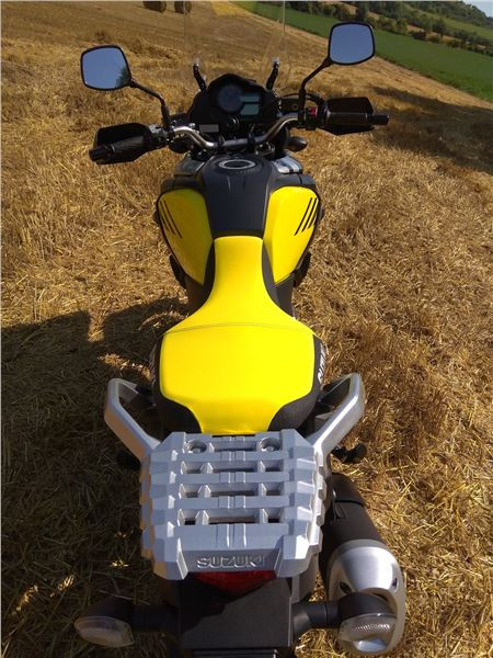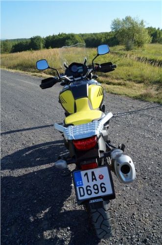 Protože ostatní redakce prý chtějí motorky bez kufrů (?!), nemáme je na testovacím CESTOVNÍM enduru ani my. Je to škoda, protože před třemi lety byla testovačka silniční verze litra naopak našlapaná vším, co Suzuki v rámci příslušenství nabízela. Kdo tedy čeká info, jak se motorka chová naložená se všemi kufry na silnici, dálnici a šotolince, kolik pak žere a co se do ní vejde, tak si musí počkat zřejmě až na další sezónu. Následujícím řádkům tedy svěřím popis V-Stroma XT ve verzi nalehko.