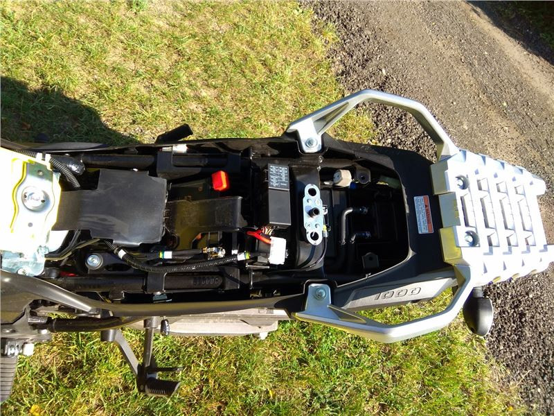 Na starém 650 bylo pod sedlem celkem slušné místo na lékárničku a pouzdro s nářadím. Cpal jsem tam i protichmatácký řetěz. Zde už je místo pouze na první dvě položky. A chybí zámek, respektive háček na zajištění přilby. To mě trochu zamrzelo, když jsem parkoval pod rozhlednou a následně šlapal i s helmou vzhůru.