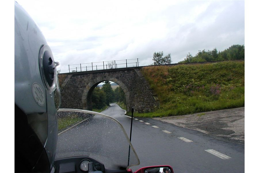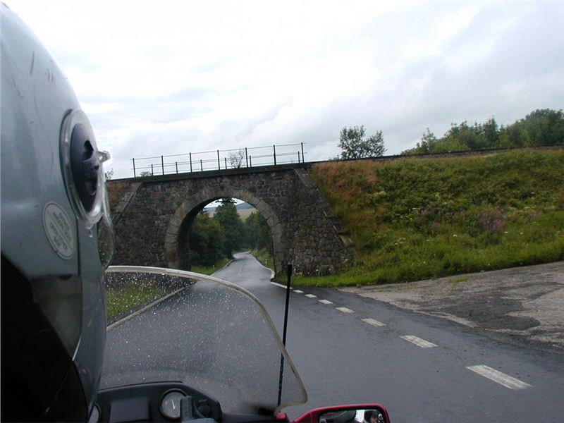 Tahle část cesty je mnohem příjemnější a zajímavější, tedy až zmizíme z údolí Ohře. Velmi kvalitní silnička se zakusuje do kopců, stoupáme, nicméně to s rychlostí nepřeháním neb stále mokro a přeci jen, vezu Janu za romantikou. A té by věru neprospělo mazání a ošetřování případných bolístek a ran.
