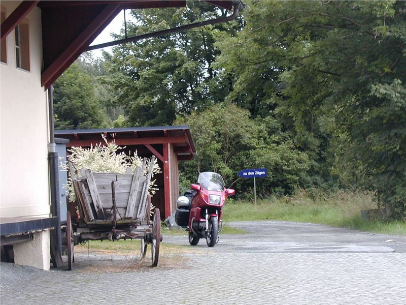 chod ztichlou a liduprázdnou vesnicí přestane bavit (oceníme přitom zde panující pořádek, tenhle německej zvyk se mi docela zamlouvá), hospoda žádná, tak uděláme čelem vzad a pěkně s dlouhým nosem se vrátíme do místa startu. Dovnitř se nám nechce, tak dáme zahrádku a pár kousků místních pivek.