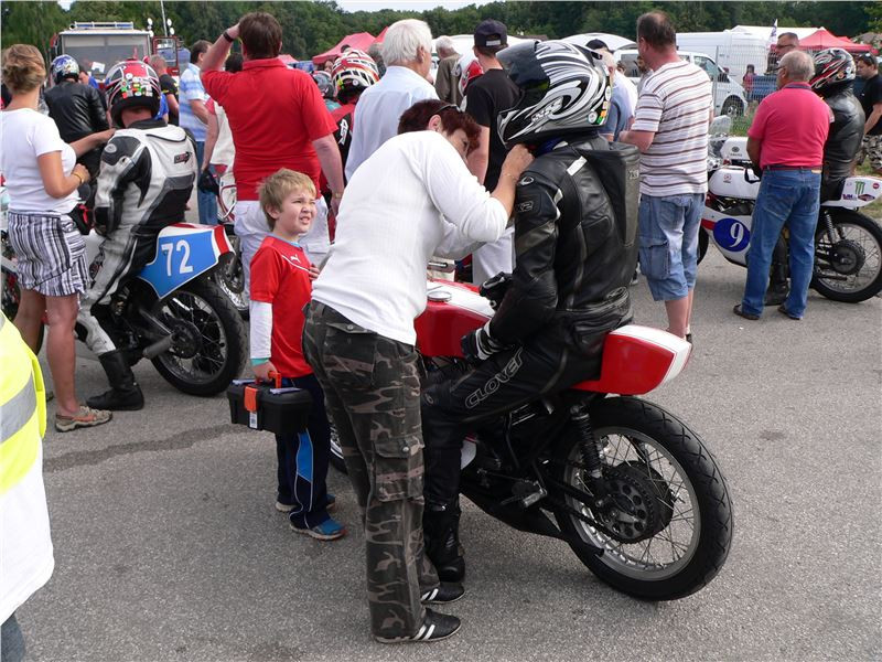 Rodinnou atmosféru těchto závodů asi nejlépe vystihují okamžiky při prohlídce boxů - malý synek s montážním kufříkem doprovází svého taťku k výjezdu z parkoviště závodních strojů a manželka mu s láskou upravuje kombinézu. Jedna z pořadatelek zabezpečující výjezd na okruh téměř každého ze závodníků poklepe po rameni a popřeje mu šťastný návrat. Více než dění na trati jsem vnímal právě to nadšení pro závody a snad i životní styl.