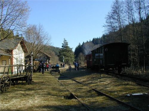 Za prohlídku nestojí jen vnitřní prostory, ale část zajímavého inventáře je i v exteriéru nádražíčka, a když budete mít štěstí, natrefíte tu o víkendu i na nějakou tu provozuschopnou muzeální motorovou drezínu. Parkoviště pro mašiny je hnedka mezi nádražní budovou a vedlejším skladištěm. To dnes slouží jako sice prostá, ale stylová hospůdka, kde lze posedět a občerstvit se základním sortimentem. Samozřejmě, nečekejte něco s mnoha hvězdičkami, to dá rozum. A motorkáře zde mají v oblibě, takže tady taky není o příjemnou chvilku nouze.