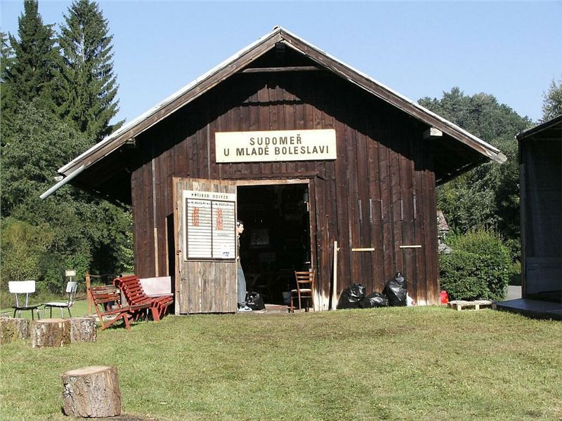 Kdysi, v časech porevolučních, kdy šlo leccos, se malá partička železničářských nadšenců rozhodla zachránit alespoň část v sedmdesátých letech zrušené spojovací trati mezi dodnes provozovanými tratěmi Mělník – Mšeno - Mladá Boleslav a Všetaty -Mladá Boleslav. Jednalo se o železnici Skalsko - Chotětov, z velké části vedené v romantickém skalním údolí Cetna. Podařilo se jim dlouhodobě si pronajmout budovu venkovského nádražíčka Sudoměř na první z uvedených tratí, ze kterého učinili svoji základnu. Z té vyráželi (a vyrážejí) na pravidelnou údržbu a záchranářské práce na několika kilometrech, které se podařilo zachránit před snesením železničního svršku a tím i zánikem. Postupem doby, tak jak získávali z okolí bývalé trati různé artefakty, památky a části inventáře, vyčlenili dvě místnosti v budově nádraží pro malé muzeum bývalé trati. Dnes jsou plně zaplněny velmi zajímavými exponáty, mnohdy staršími více jak století. Pracovní nářadí, pomůcky, dokumentace, dobové fotky a předměty denní železničářské potřeby, to všechno návštěvníka přenáší přes propast času a dává mu nahlédnout do tehdejší, dozajista nelehké, ale i zajímavé a bouřlivě se rozvíjející doby. Rozhodně zde strávená hodinka či dvě nejsou promarněným a zabitým časem. Vstupné je dobrovolné, tedy od nuly až do sumy, kterou si sami určíte a rozhodnete.