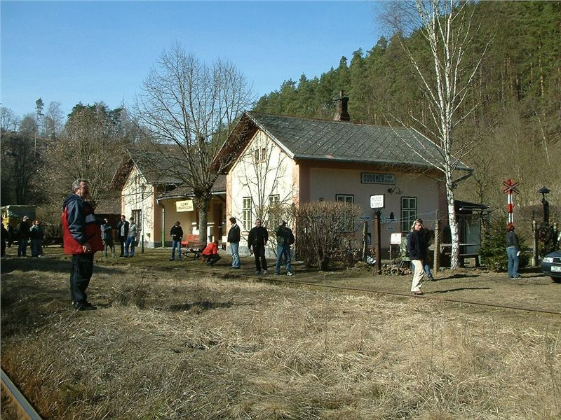 A jak se tam dostat? Nádraží leží prakticky na silnici č. 259 spojující Mšeno a Katusice, a sice na odbočce na Skalsko hned u železničního přejezdu mezi obcemi Vrátno a Sudoměř, na dně úzkého a stinného skalnatého cetenského údolí. Z odbočky je to k nádražíčku jen stovka metrů.