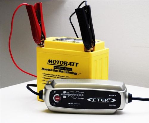 V současné době si můžete starost o baterie hodně usnadnit pořízením chytré nabíječky, která nejen že baterii dobije, ale můžete ji nechat připojenou po neomezenou dobu v udržovacím módu. Tento režim byl vyvinut přímo pro motobaterie a jejich snadnou údržbu. Budeme li hovořit o konkrétním přístroji, určitě nesáhnete vedle, když zvolíte nabíječku švédského výrobce Ctek, která pravidelně získává celou řadu ocenění a vítězí v testech s konkurencí. Manipulace je více než snadná – na kontakty baterie ve vašem motocyklu připojíte krokosvorky či na pevno nainstalujete kovová očka, propojíte s nabíječkou a nabíjíte. Jakmile se akumulátor plně dobije, nabíječka přejde automaticky do udržovacího módu. V tomto režimu si kontroluje baterku v pravidelných intervalech a v případě potřeby dobije do 100% kapacity.