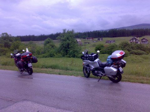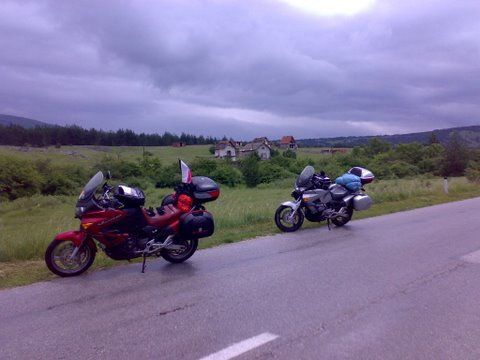Co říci o této části cesty? Pro neustálý déšť jen pár fotek, po přechodu hranice do BiH krásná krajina, cesty celkem děs, ale některé úseky zase v poho - prostě dosti veliké změny, co do kvality. Ovšem projíždět vesnicemi, které jsou do dnešního dne tak, jak tam prošla fronta - vypálené, rozstřílené a mezi těmito domy smrti stojí jeden netknutý či opravený a v něm se svítí a topí. No hrůza mne jímá, představím-li si zvěrstva, jež se tam udála a nechápali jsme s Michalem, jak někdo v osadě či vesnici duchů dokáže žít...