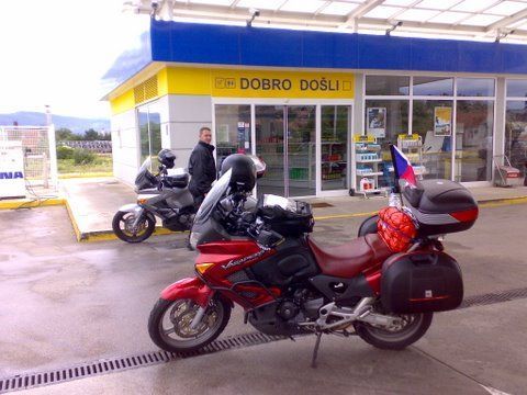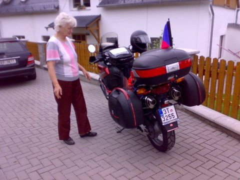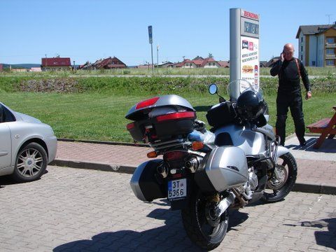 Odjezd cca mezi 8-9 hod dopolední se klasicky posunul, rozloučení s blízkými nebralo konce a do toho moje maminka (81 let), která nás musela opeskovat, něco na způsob jako že jsme blázni apod., ale pak zkontrolovat, zda máme vše potřebné nabaleno a tak. Konečně sedíme v sedlech. Počasí nic moc, ale neprší – zatím!!! A tak máváme Olince (má žena), babičce, Jemince (náš pejsek) a vyrážíme. Neměli jsme v plánu žádné dálnice a rychlostní silnice, a tak si vyrážíme směr Šumperk, Svitavy a ve Ždírci na pumpě dáváme papání našim koním i sobě a posíláme svým blízkým první zdravice.